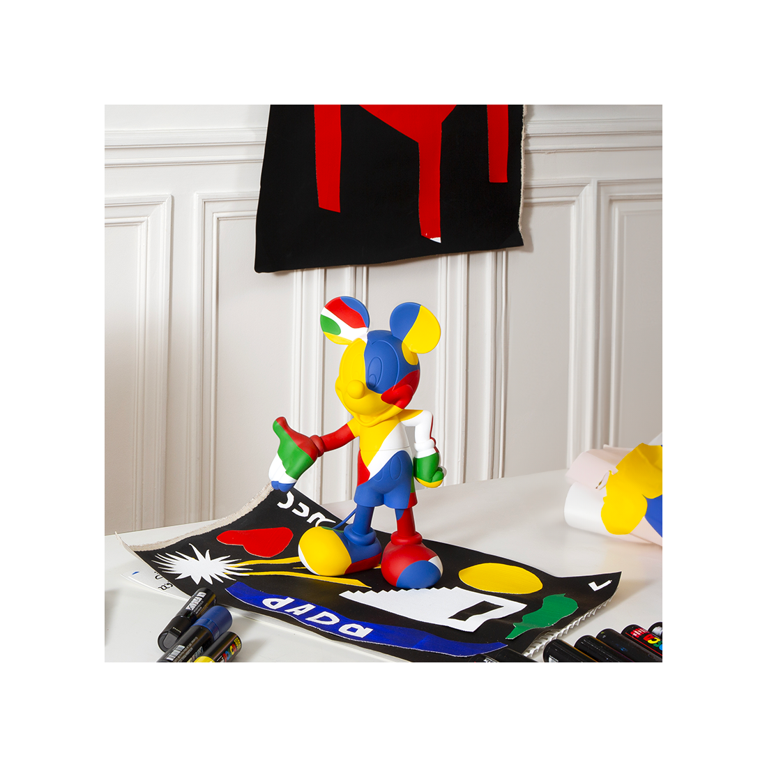 Cette pièce unique capture l’esprit dynamique et iconique de Mickey tout en y ajoutant une touche contemporaine et audacieuse. Chaque détail est minutieusement peint à la main, mettant en valeur les volumes, les couleurs vives et les expressions caractéristiques du personnage. L’œuvre incarne la fusion entre design moderne et héritage pop, créant un objet décoratif et artistique qui attire le regard et suscite l’émotion.