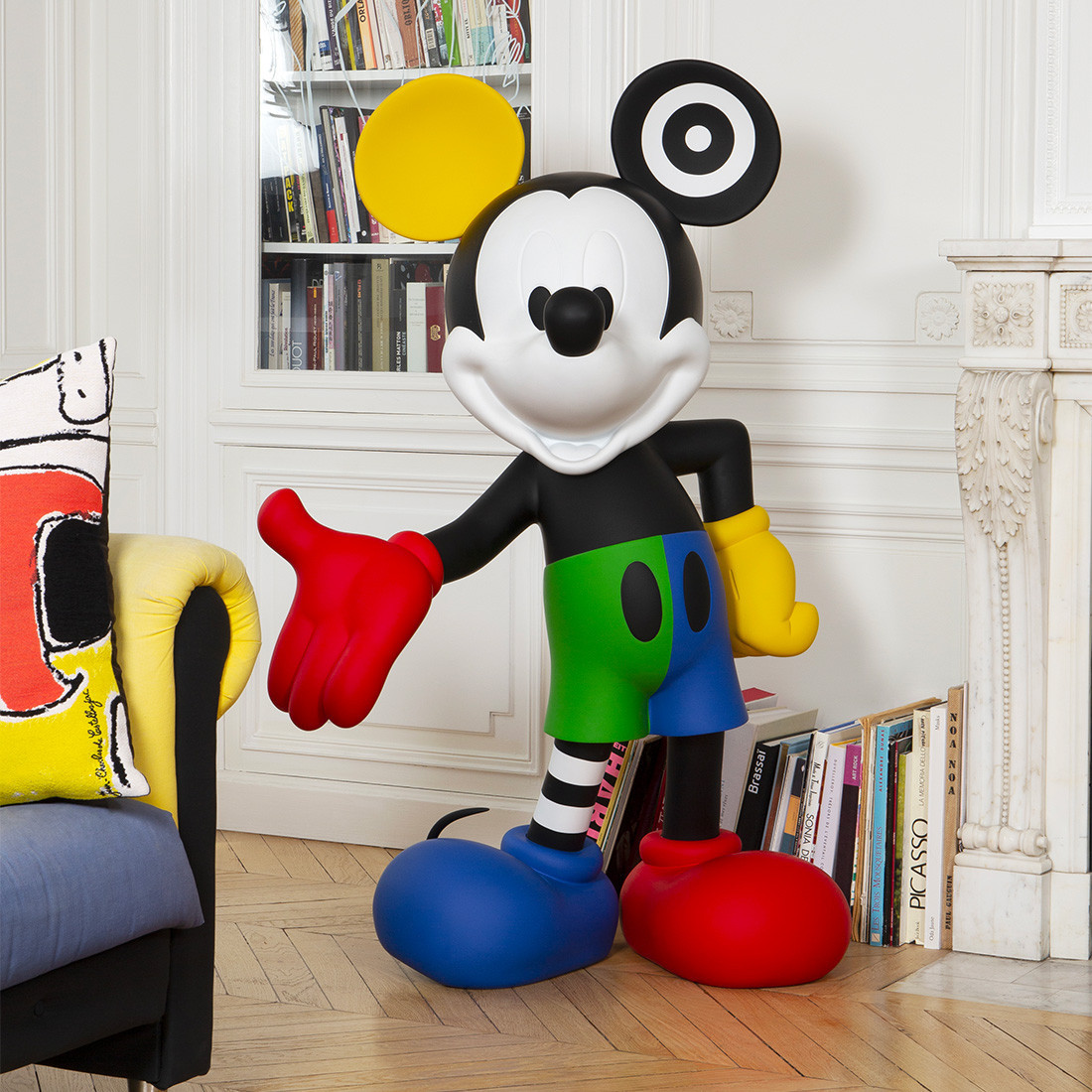 Mickey Kolor – Large est une sculpture design haut de gamme signée Leblon Delienne, qui célèbre l’univers de la pop culture et l’iconique Mickey Mouse. Cette création en grand format réinterprète Mickey avec des couleurs vives et audacieuses, offrant une œuvre originale et moderne qui attire le regard et enrichit tout espace avec une présence forte et ludique.