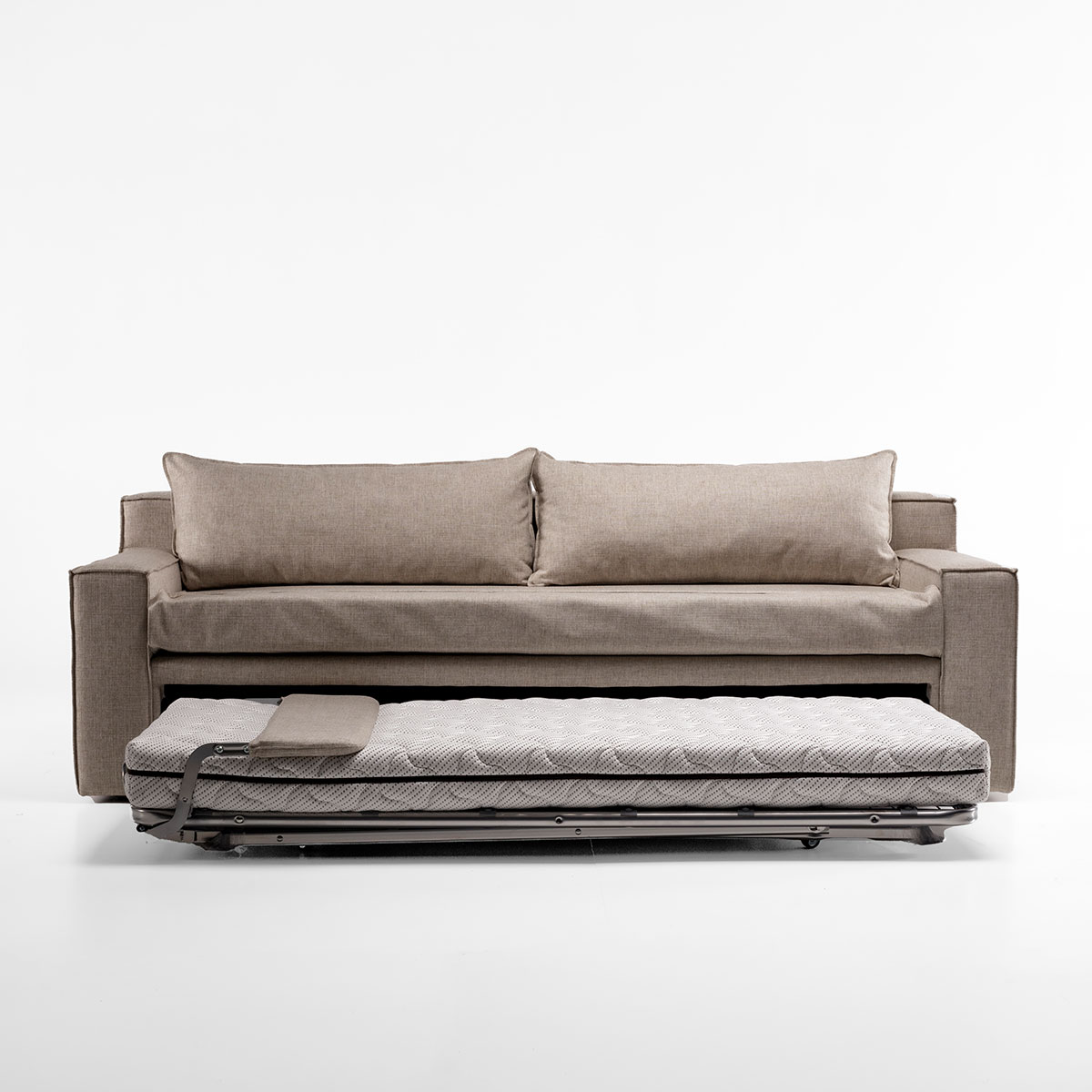 Ce canapé lit design haut de gamme dispose d’un système de relèvement automatique extrêmement sophistiqué, garantissant une utilisation sécurisée et durable pendant de nombreuses années. Équipé de deux matelas en mousse haute résilience Supernova Foams™ Reflex, il offre un confort de sommeil optimal comparable à celui d’un lit traditionnel. Ses dimensions imposantes (92 x 235 cm) et ses deux grands coussins de 97 x 37 cm assurent une expérience de détente et de couchage exceptionnelle.
