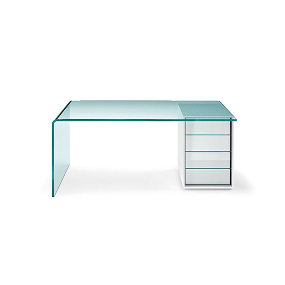 Rialto L | Bureau design en verre signé FIAM Italia associe transparence, élégance et fonctionnalité dans une pièce emblématique du design italien. Conçu en verre cintré de 15 mm, ce bureau incarne la légèreté visuelle et la sophistication technique propres à la maison FIAM Italia.
