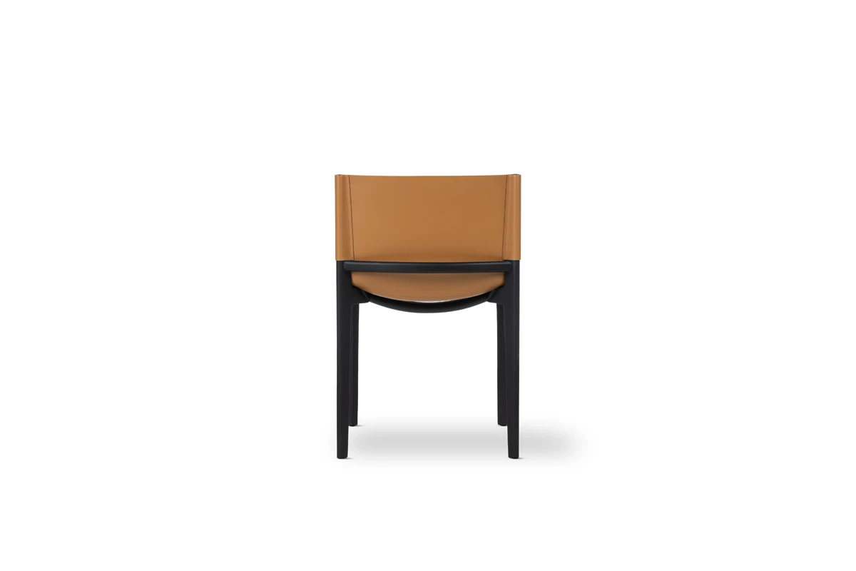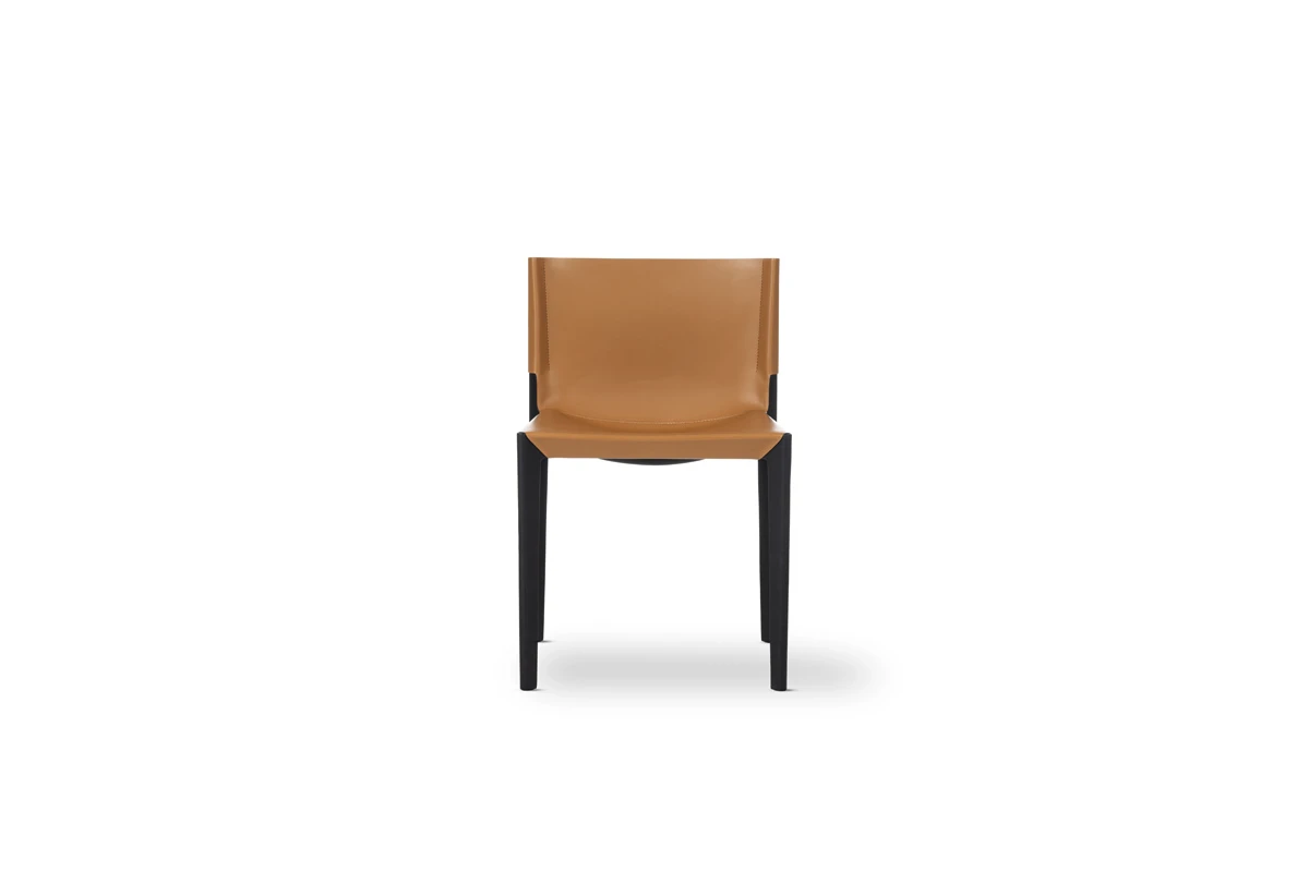 Le design, volontairement minimaliste, révèle un travail artisanal d’une grande précision : chaque section de cuir est finement ajustée et cousue avec soin, témoignant du savoir-faire d’Amura Lab. Cette chaise, à la fois fonctionnelle et poétique, allie robustesse et élégance dans une expression de simplicité sophistiquée.