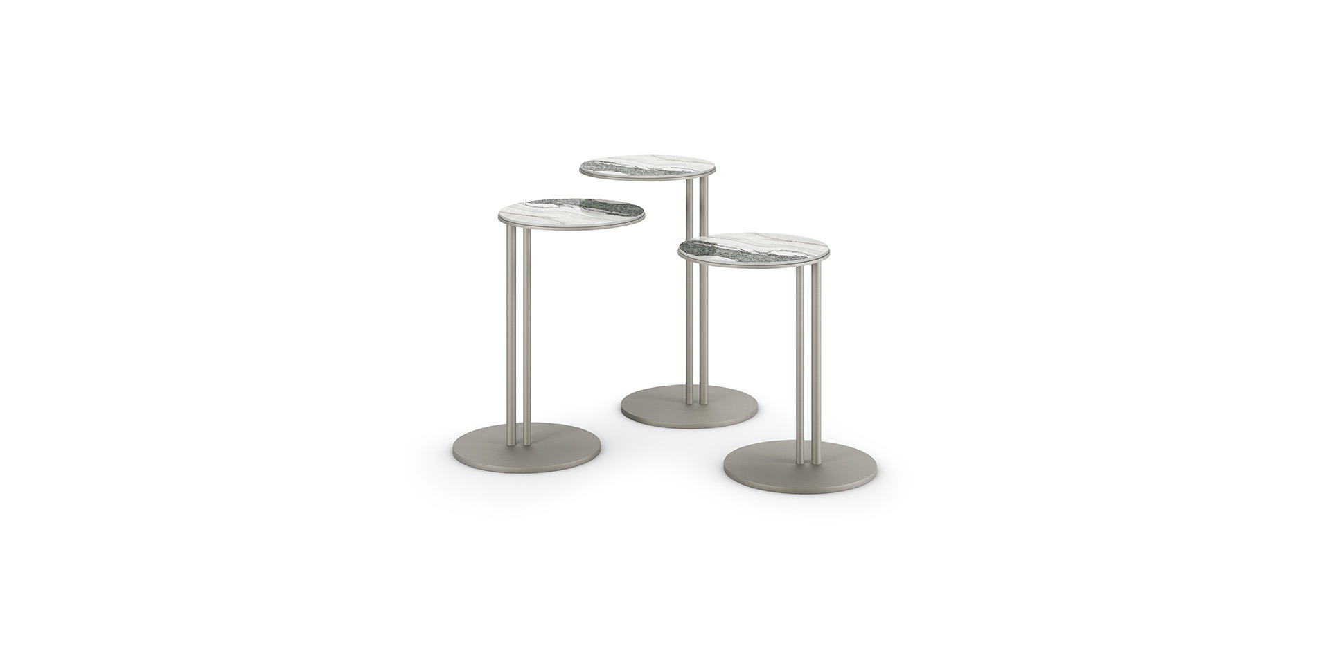 Conçue pour accompagner canapés et fauteuils, la table basse design Sting XL se déplace facilement et sert de table d’appoint polyvalente. Les finitions premium (titane, bronze, graphite, pearl, noir ; Portoro, Makalu, Breccia, Kaindy, Colosseo) soulignent le savoir-faire du mobilier italien et s’intègrent dans des intérieurs modernes.