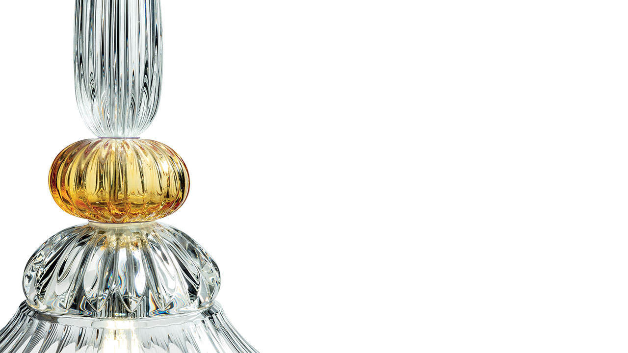 La suspension design Palazzo Ducale Sospensione de Reflex Angelo incarne l’excellence italienne. Inspirée de l’architecture des palais vénitiens, cette création associe le cristal transparent gravé à des détails colorés (ambre, rouge, bleu, vert ou aigue-marine), pour une présence raffinée et lumineuse.
