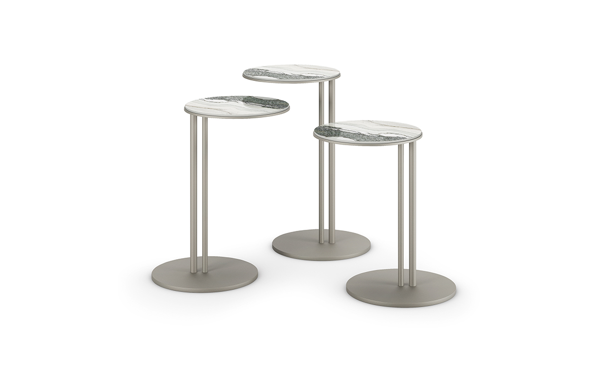 Légères et faciles à déplacer, ces tables basses design s’intègrent harmonieusement avec canapés et fauteuils, créant un salon moderne, convivial et polyvalent. La base en acier se compose de deux pieds élancés de diamètres différents, sublimés par des finitions artisanales précieuses. Chaque détail traduit le savoir-faire italien et l’attention portée à la qualité des matériaux.