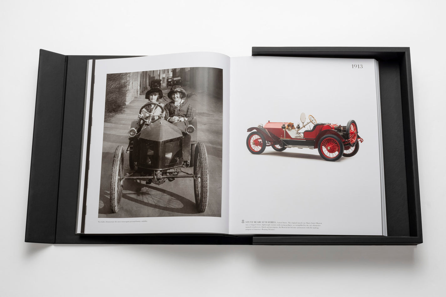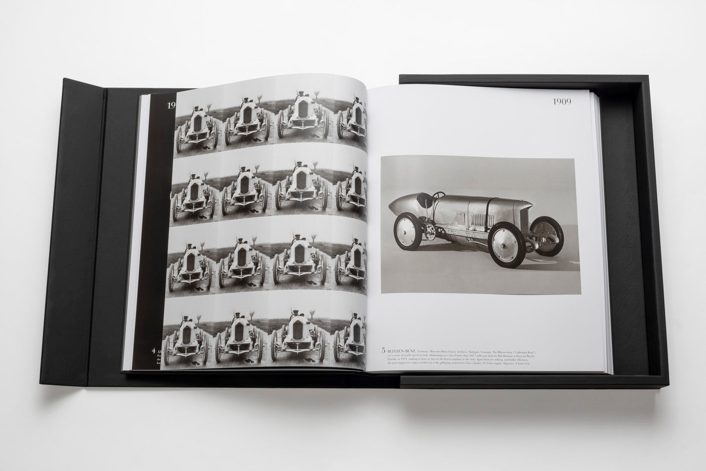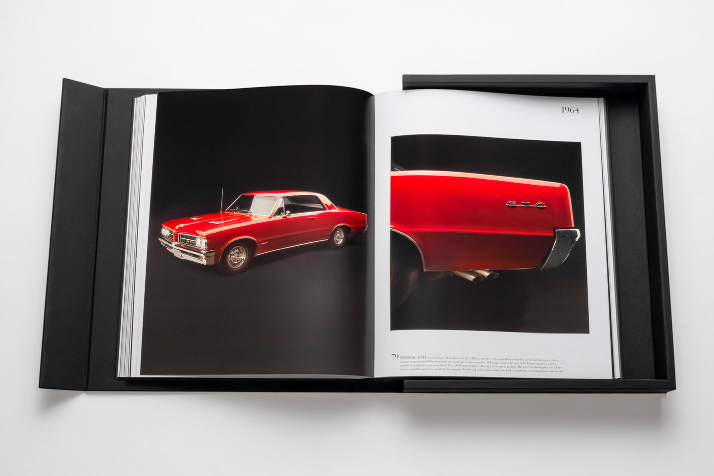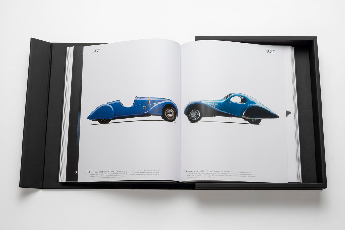 Ce livre design haut de gamme de la prestigieuse Ultimate Collection se présente dans un écrin élégant en caoutchouc noir avec plaque métallique, abritant un volume artisanal de 170 pages et 100 illustrations soigneusement sélectionnées. Les dimensions imposantes (39 x 47 cm) et le poids remarquable (11,34 kg) de cet ouvrage en font une pièce maîtresse qui s’impose avec caractère dans tout intérieur raffiné. La reliure artisanale traditionnelle et la qualité exceptionnelle des tirages couleur transforment chaque page en une célébration du design automobile.